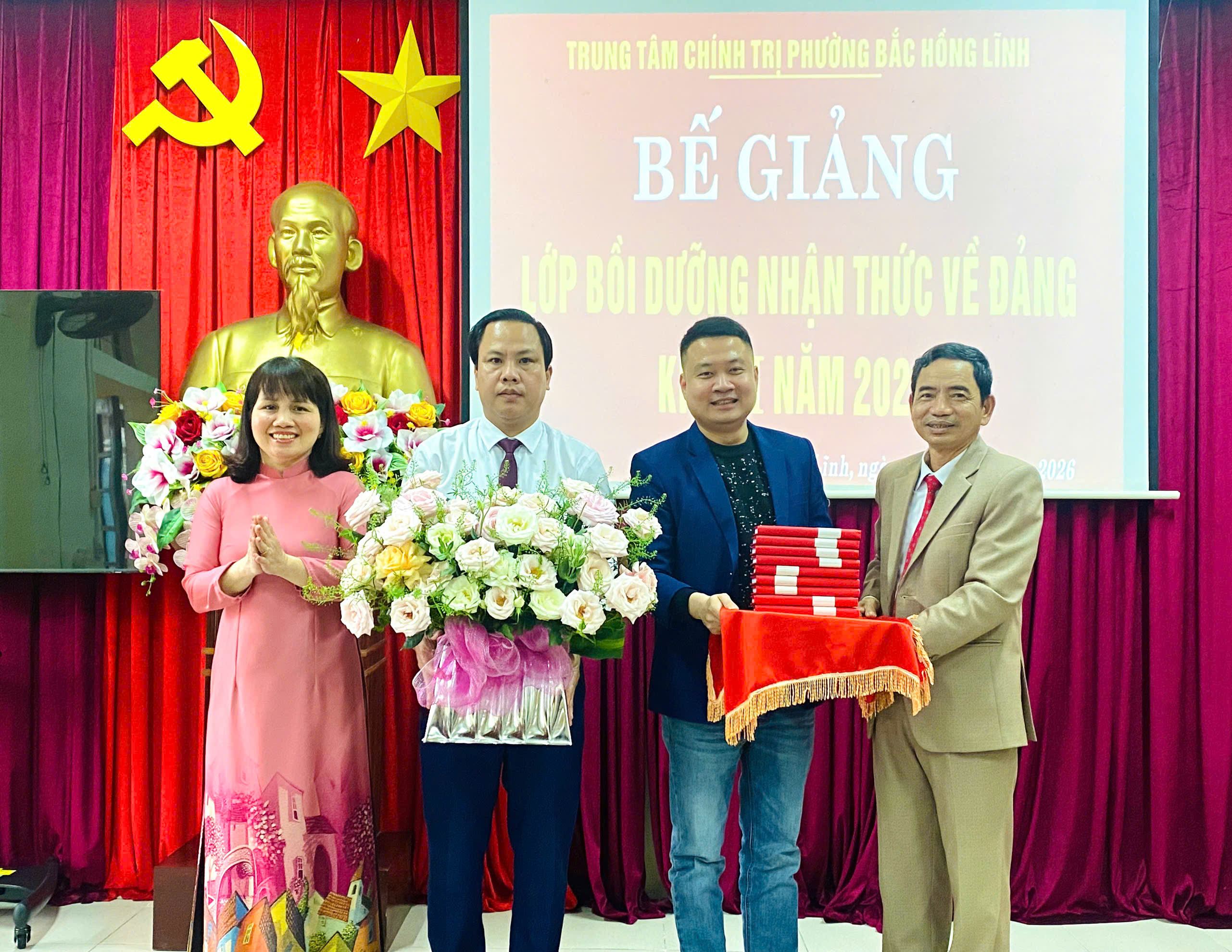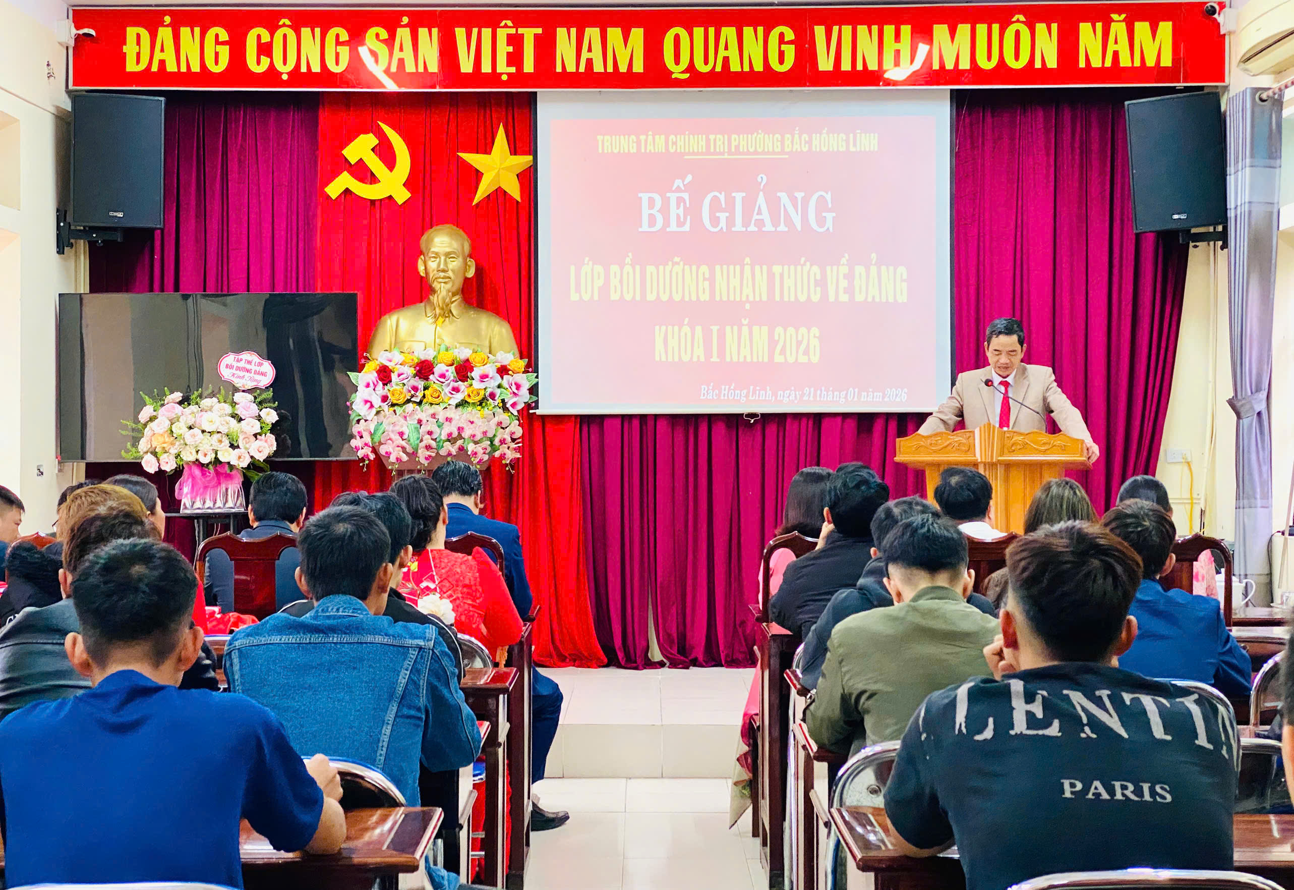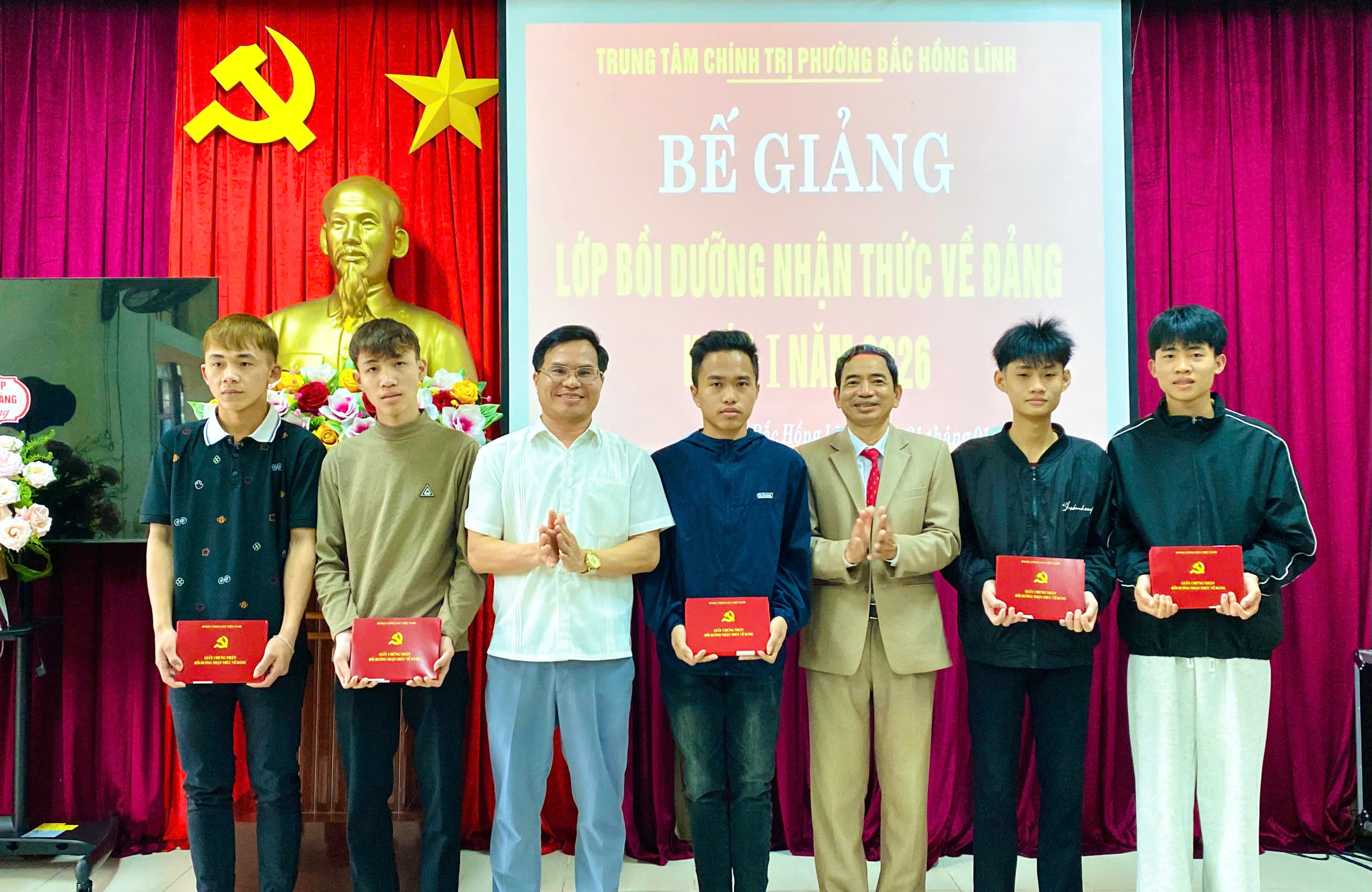 Chiều ngày 21/1,Trung tâm chính trị phường Bắc Hồng Lĩnh phối hợp với Đảng uỷ, Hội đồng nghĩa vụ quân sự phường Bắc Hồng Lĩnh, phường Nam Hồng Lĩnh và xã Trường Lưu tổ chức Bế giảng lớp bồi dưỡng lý luận chính trị và nhận thức về Đảng cho thanh niên, công dân lên đường nhập ngũ năm 2026.