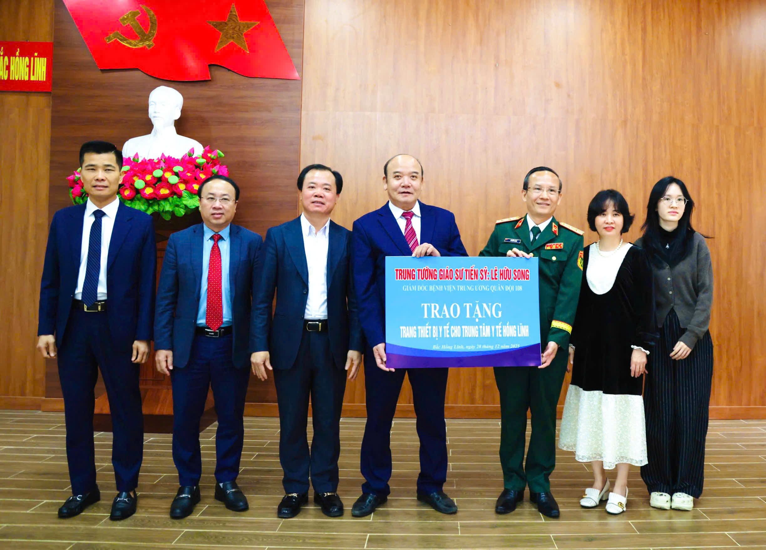 Tại buổi làm việc Bệnh viện Trung ương Quân đội 108 đã trao tặng Trung tâm Y tế Hồng Lĩnh 01 máy chạy thận nhân tạo, 01 Monitor theo dõi bệnh nhân và hỗ trợ khuyến học cho các nhà trường trên địa bàn nhằm góp phần nâng cao chất lượng công tác khám, điều trị cho Nhân dân trên địa bàn, đồng thời kịp thời động viên, khích lệ các em học sinh có hoàn cảnh khó khăn vươn lên trong học tập, tiếp thêm niềm tin và động lực cho sự nghiệp giáo dục địa phương.