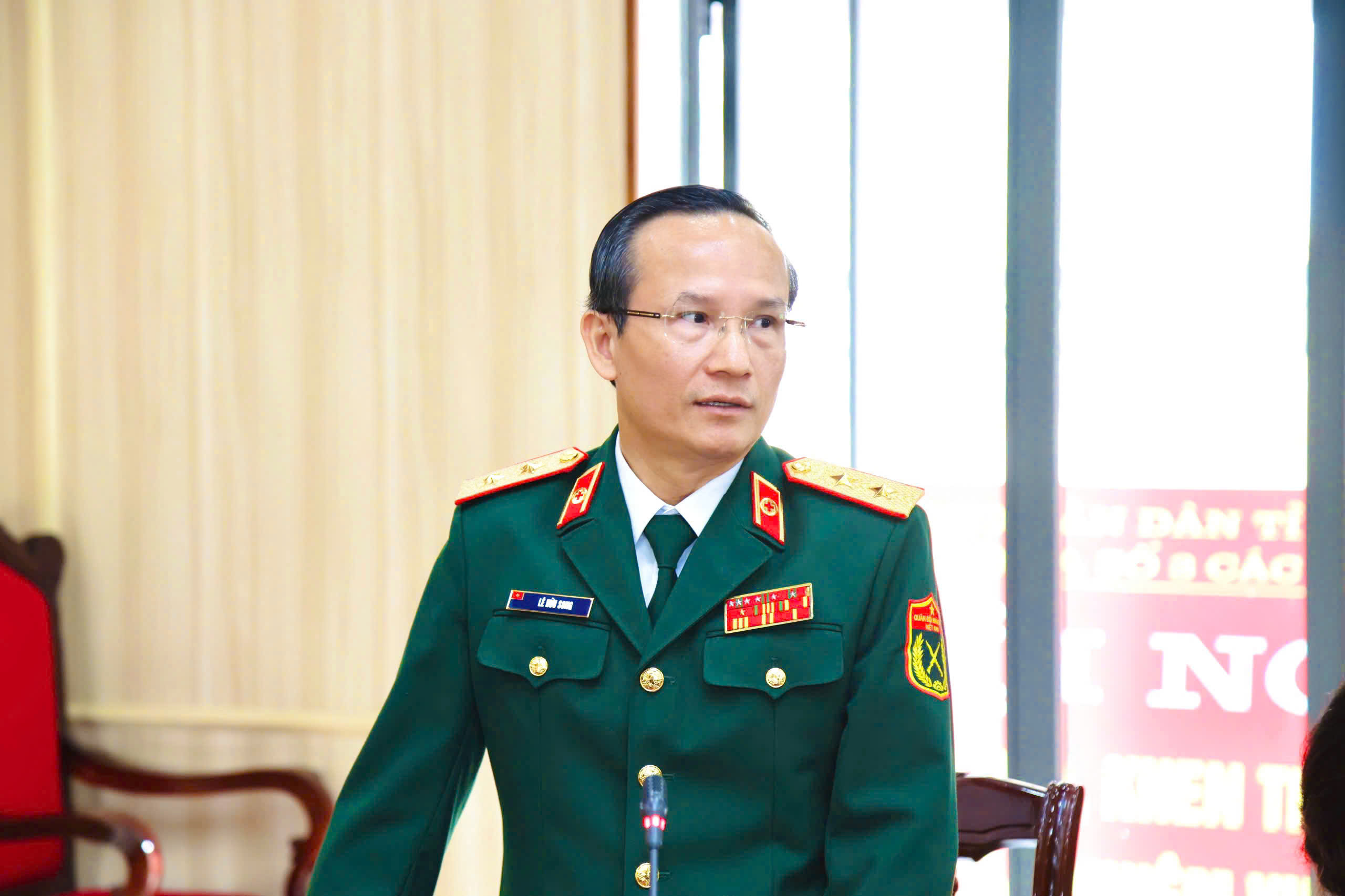 Trung tướng, Giáo sư – Tiến sĩ Lê Hữu Song, Phó Bí thư Đảng ủy, Giám đốc Bệnh viện Trung ương Quân đội 108 phát biểu tại buổi làm việc