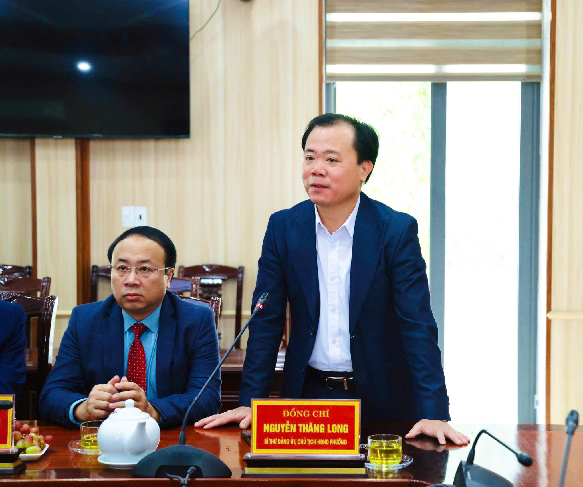 Tiếp và làm việc với đoàn có đồng chí Nguyễn Thăng Long, Bí thư Đảng ủy, Chủ tịch HĐND phường; đồng chí Nguyễn Quang Vinh, Phó Bí thư Thường trực Đảng ủy phường; đồng chí Trần Xuân Đức, Phó Bí thư Đảng ủy, Chủ tịch UBND phường; Giám đốc Trung tâm Y tế Hồng Lĩnh; Hiệu trưởng các trường mầm non, tiểu học, trung học cơ sở công lập trên địa bàn.