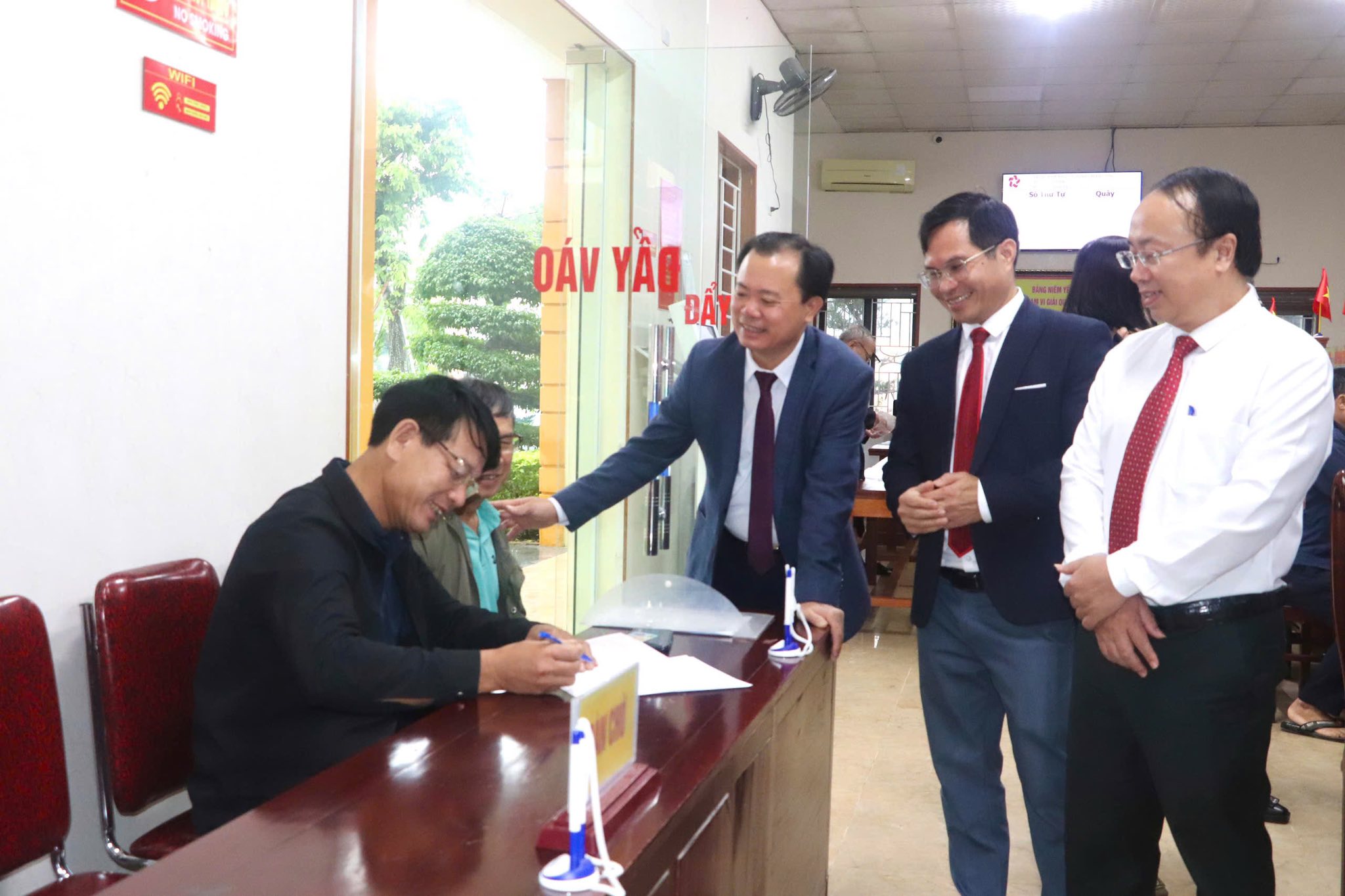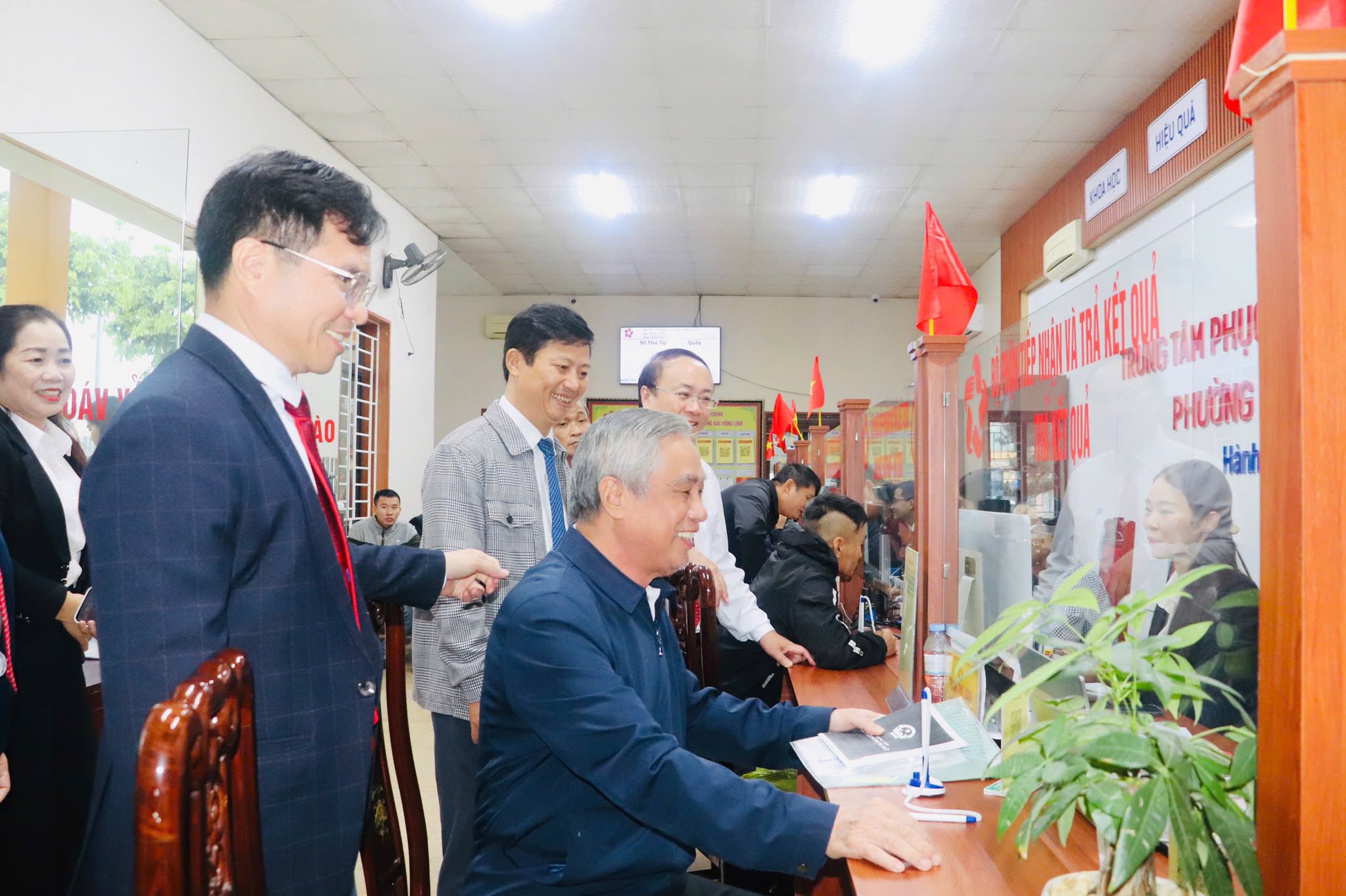 Đồng chí Nguyễn Thăng Long, Bí thư Đảng ủy, Chủ tịch HĐND phường; Đồng chí Nguyễn Quang Vinh, PBT TT Đảng ủy cùng đồng chí Đặng Ngọc Sơn, Chủ nhiệm UBKT Đảng ủy thăm hỏi tình hình thực hiện giải quyết TTHC tại Trung tâm Phục vụ hành chính công phường Bắc Hồng Lĩnh