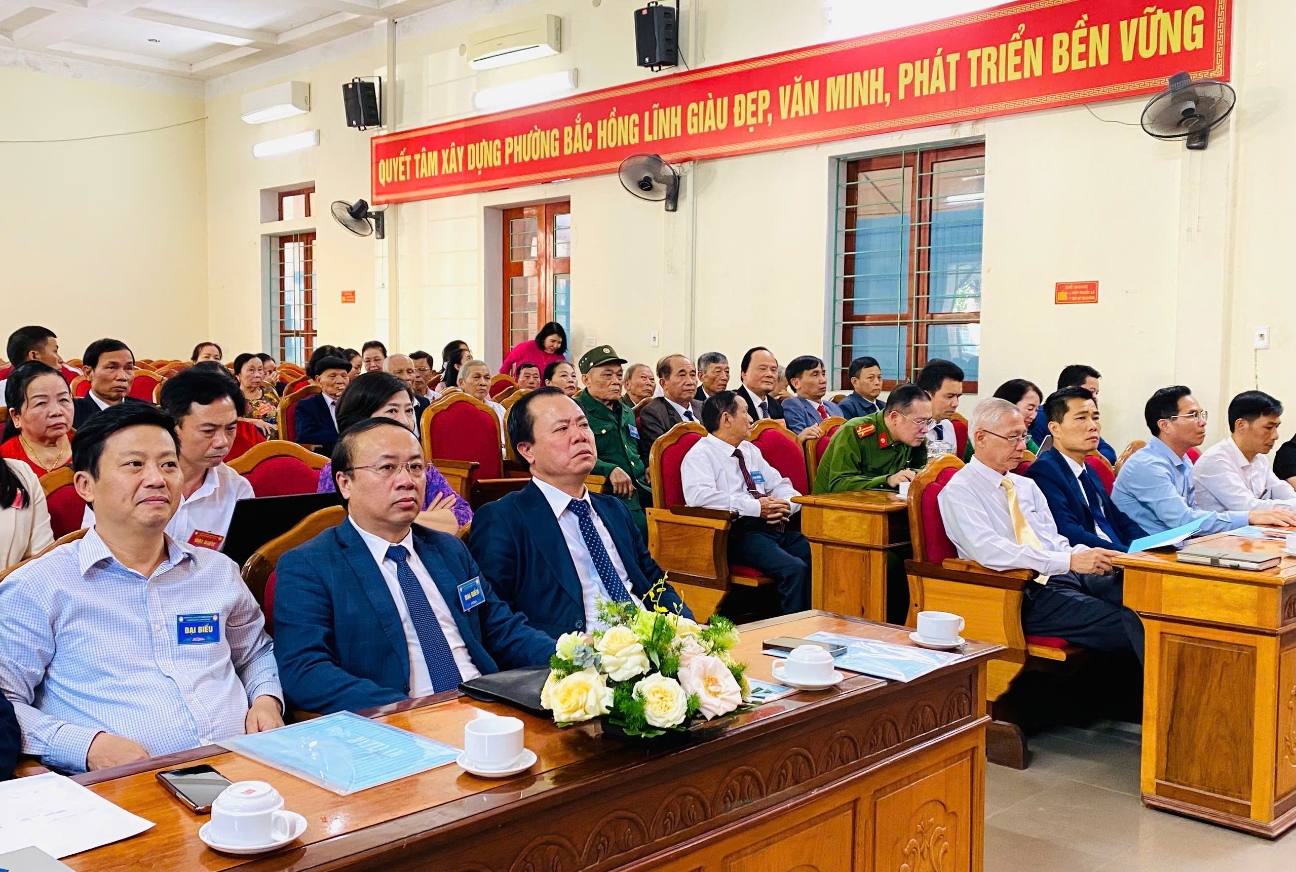 Các đồng chí lãnh đạo phường Bắc Hồng Lĩnh tặng hoa chúc mừng Đại hội