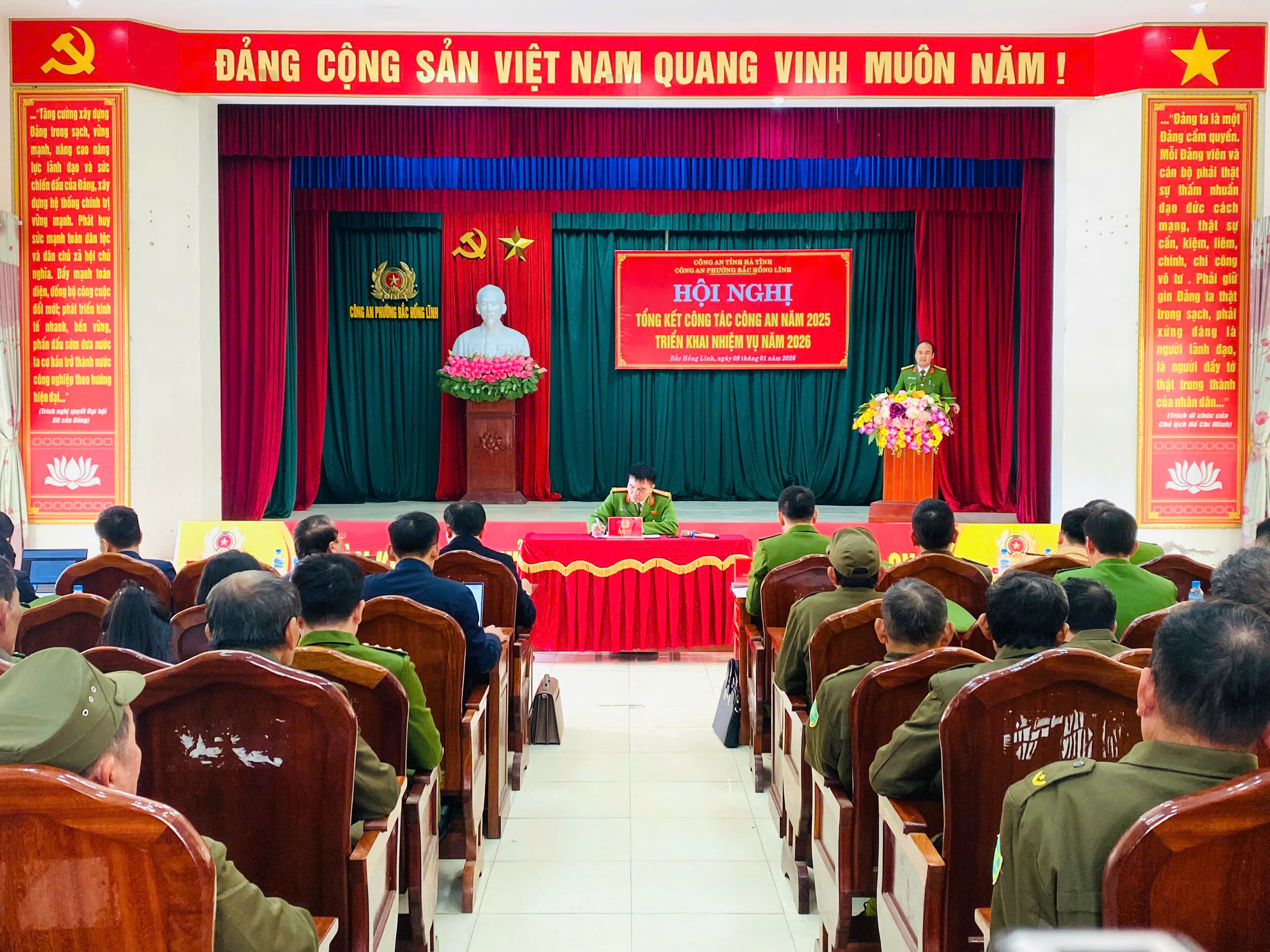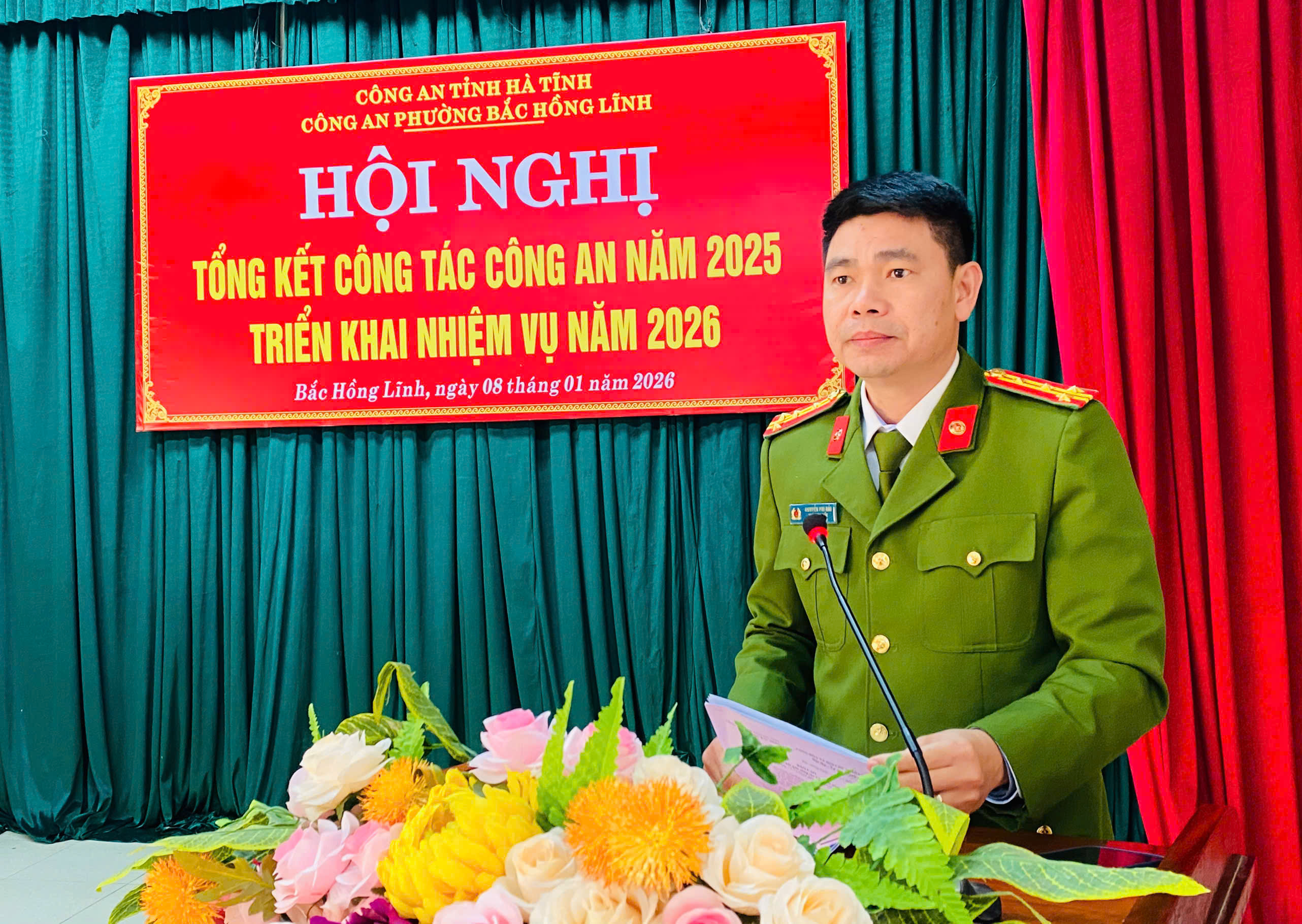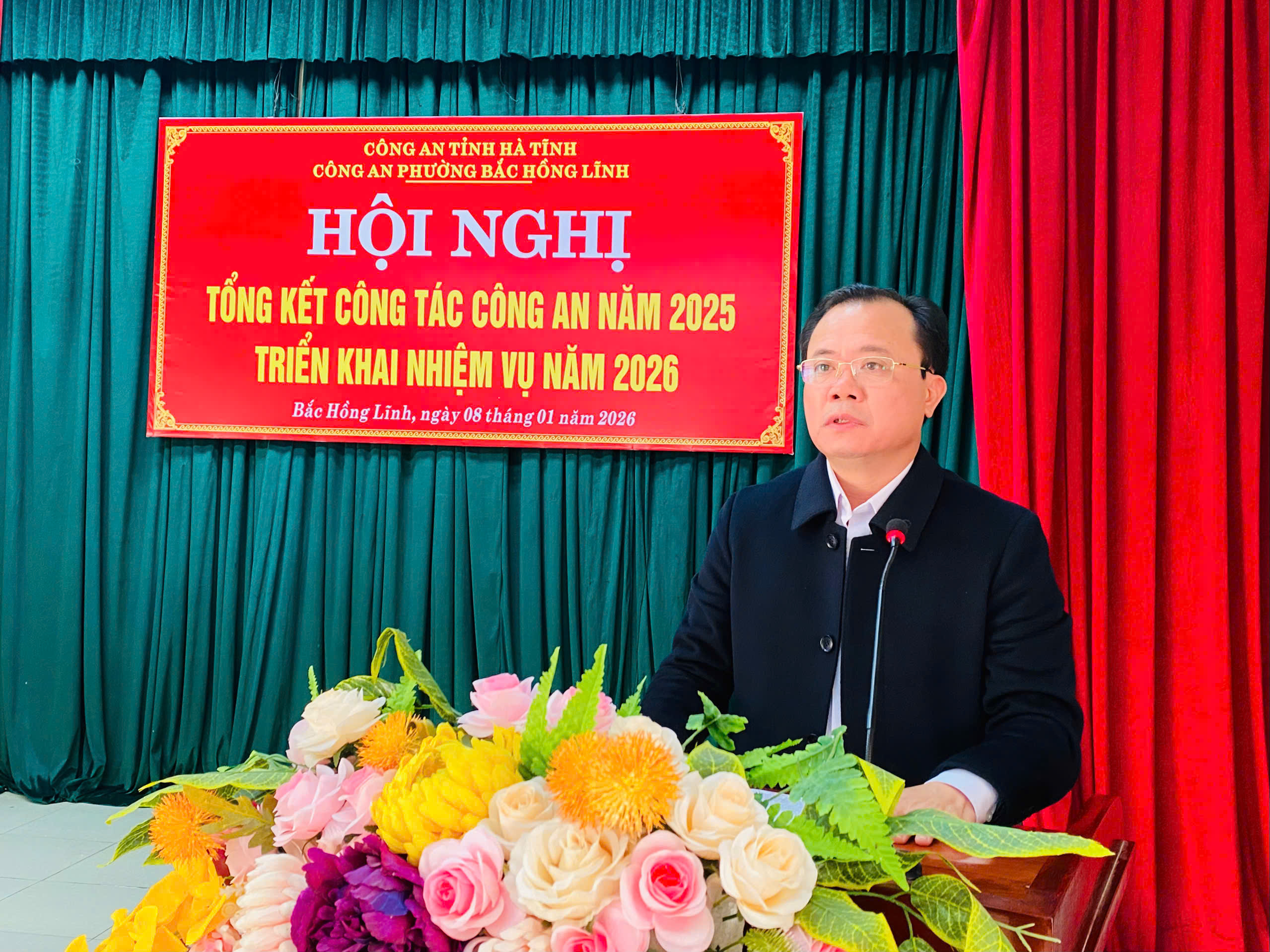 Phát biểu chỉ đạo tại hội nghị, đồng chí Phó Giám đốc Công an tỉnh và đồng chí Nguyễn Thăng Long, Bí thư Đảng ủy, Chủ tịch HĐND phường ghi nhận, biểu dương những nỗ lực và kết quả nổi bật của Công an phường Bắc Hồng Lĩnh trong năm 2025.