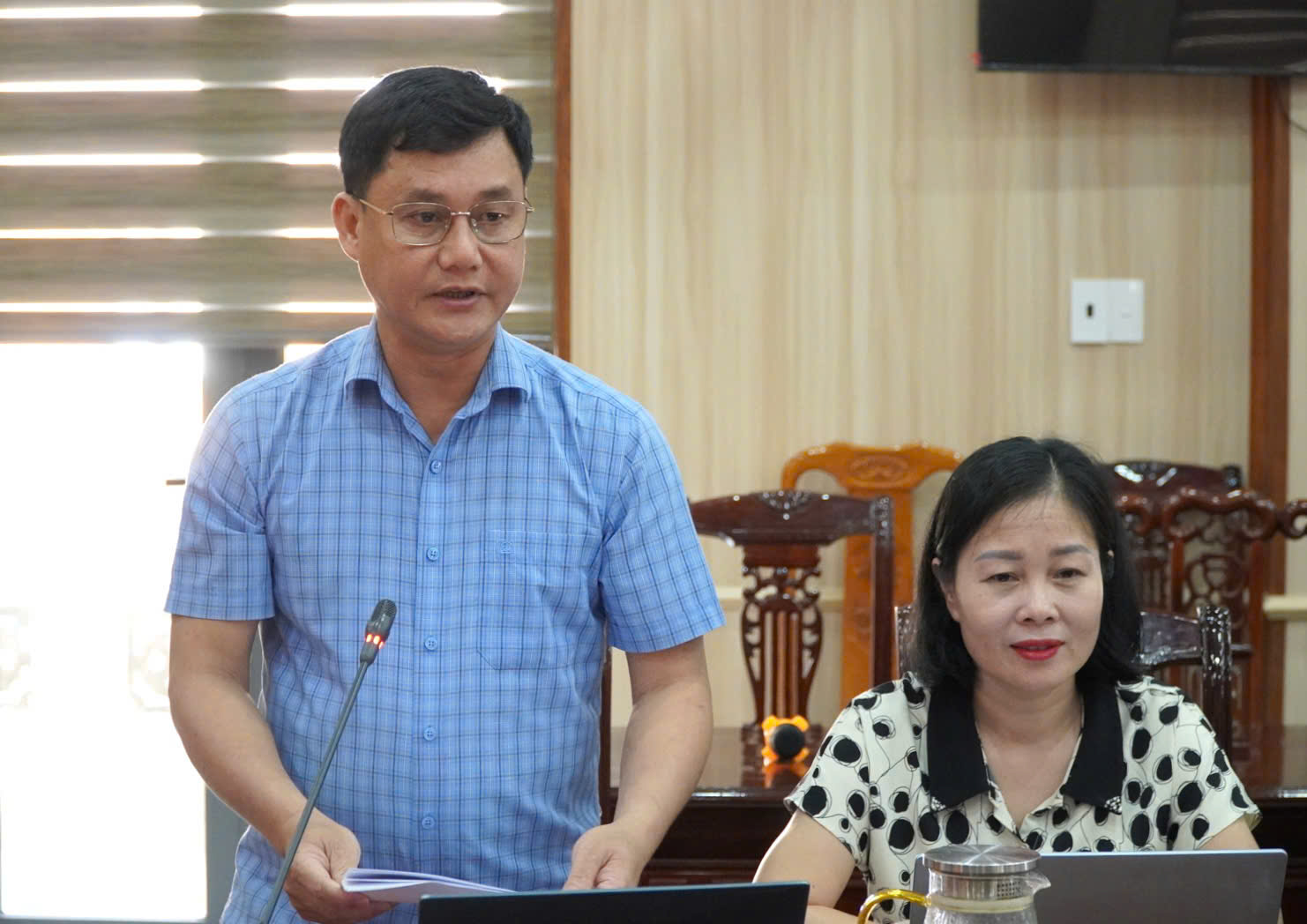 Đồng chí Đinh Văn Thái, UVBTV, Trưởng ban Xây dựng Đảng thông qua các nội dung tại hội nghị
