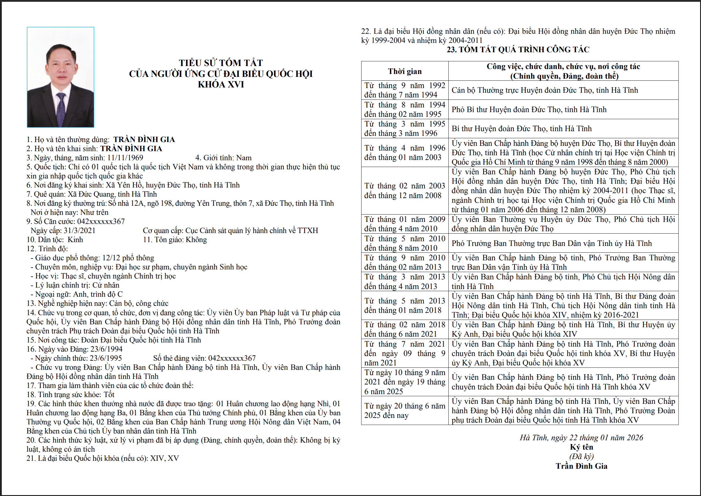 - Trần Đình Gia - Ủy viên BCH Đảng bộ tỉnh, Ủy viên BCH Đảng bộ HĐND tỉnh, Phó Trưởng đoàn chuyên trách phụ trách Đoàn ĐBQH tỉnh, Ủy viên Ủy ban Pháp luật và Tư pháp của Quốc hội.