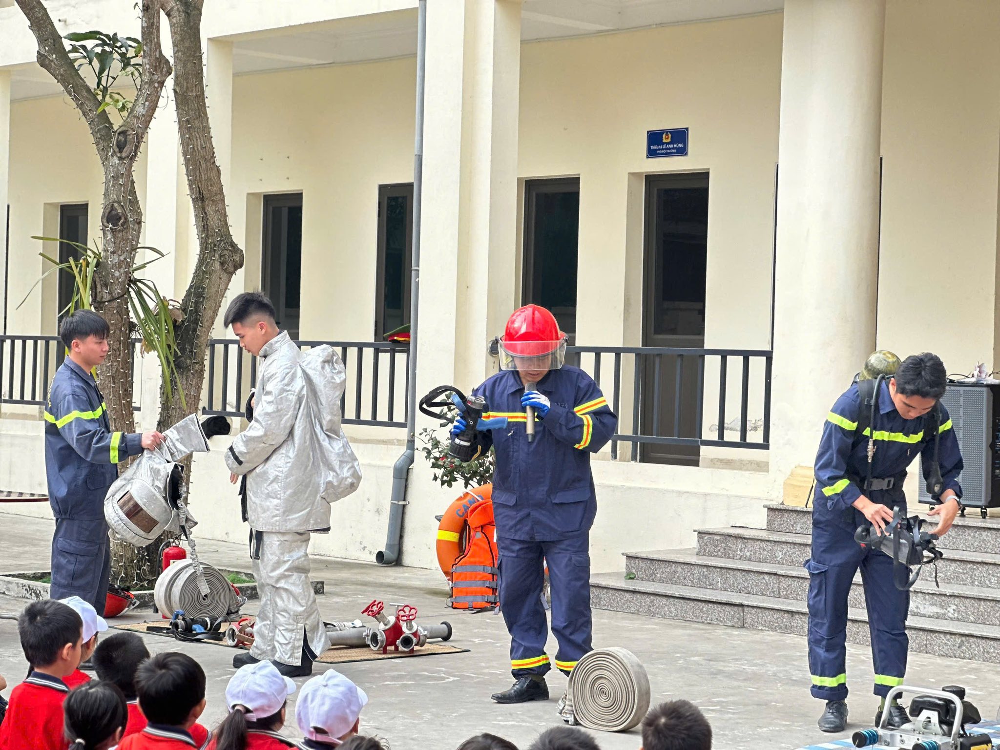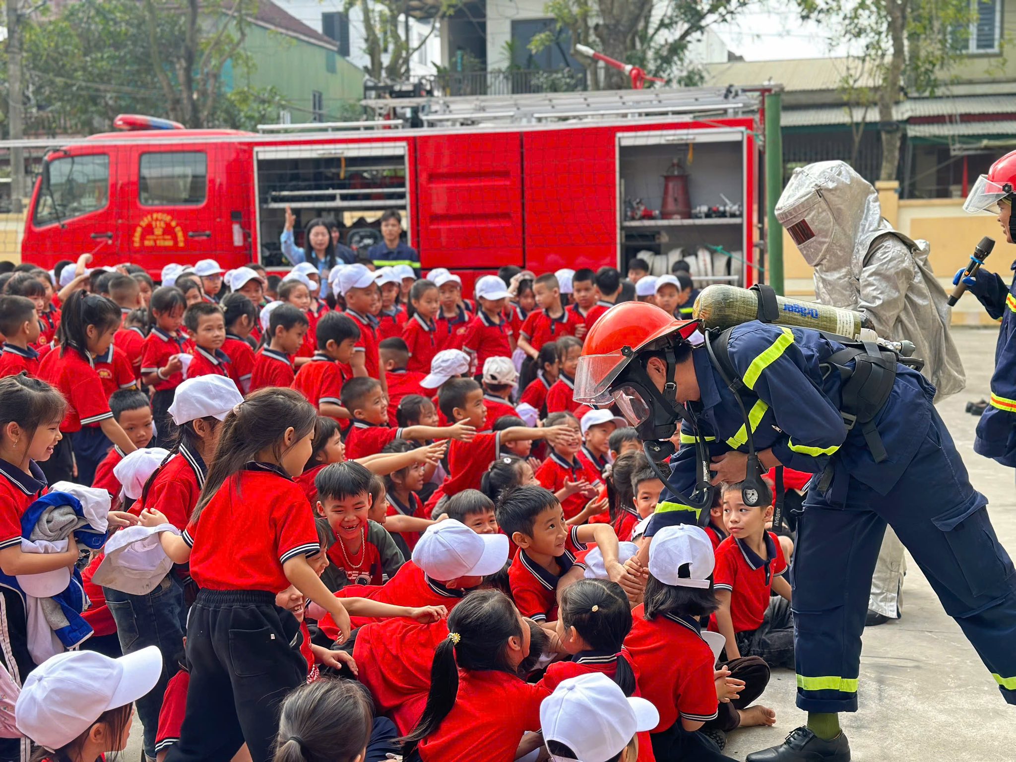 Ngay từ khi đặt chân đến đơn vị, các em học sinh đã vô cùng háo hức và thích thú trước hình ảnh những chú lính cứu hỏa trong bộ trang phục chuyên dụng, những xe chữa cháy hiện đại cùng các thiết bị cứu hộ chuyên nghiệp. Với cách chia sẻ gần gũi, dễ hiểu, các cán bộ, chiến sĩ PCCC đã giúp các em hiểu thêm về công việc thầm lặng nhưng vô cùng cao cả của người lính cứu hỏa – những người luôn sẵn sàng đối mặt với hiểm nguy để bảo vệ tính mạng và tài sản của nhân dân.