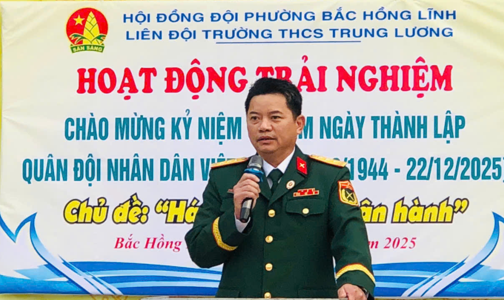 Nhân kỷ niệm 81 năm Ngày thành lập Quân đội nhân dân Việt Nam (22-12-1944 – 22-12-2025), Hội Cựu chiến binh (CCB) phường Bắc Hồng Lĩnh đã phối hợp với Đoàn Thanh niên phường và các trường Tiểu học, THCS trên địa bàn tổ chức các buổi nói chuyện truyền thống nhằm giáo dục lòng yêu nước, bồi đắp lý tưởng cách mạng cho thế hệ trẻ.
