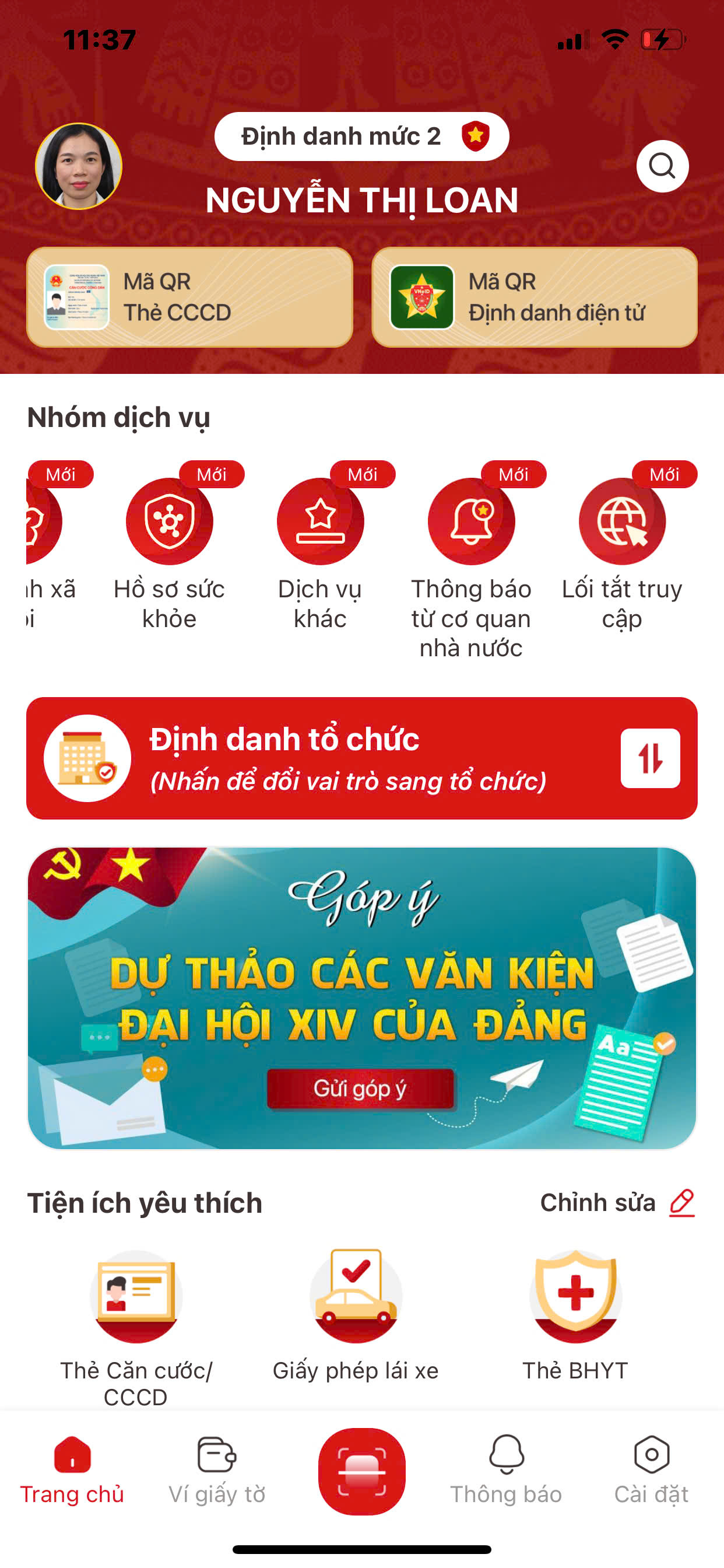 🧩 Bước 3: Tại trung tâm ứng dụng, click vào Banner "Góp ý dự thảo các văn kiện Đại hội XIV của Đảng"
