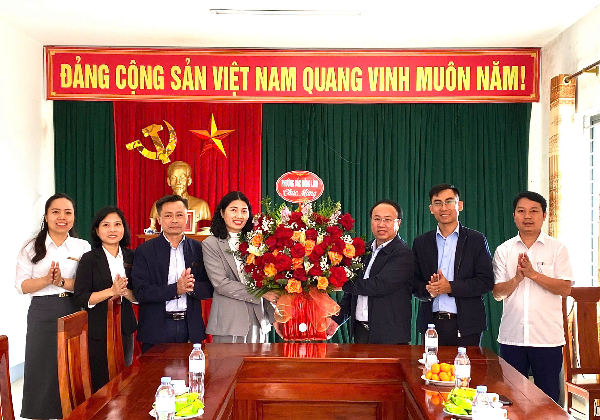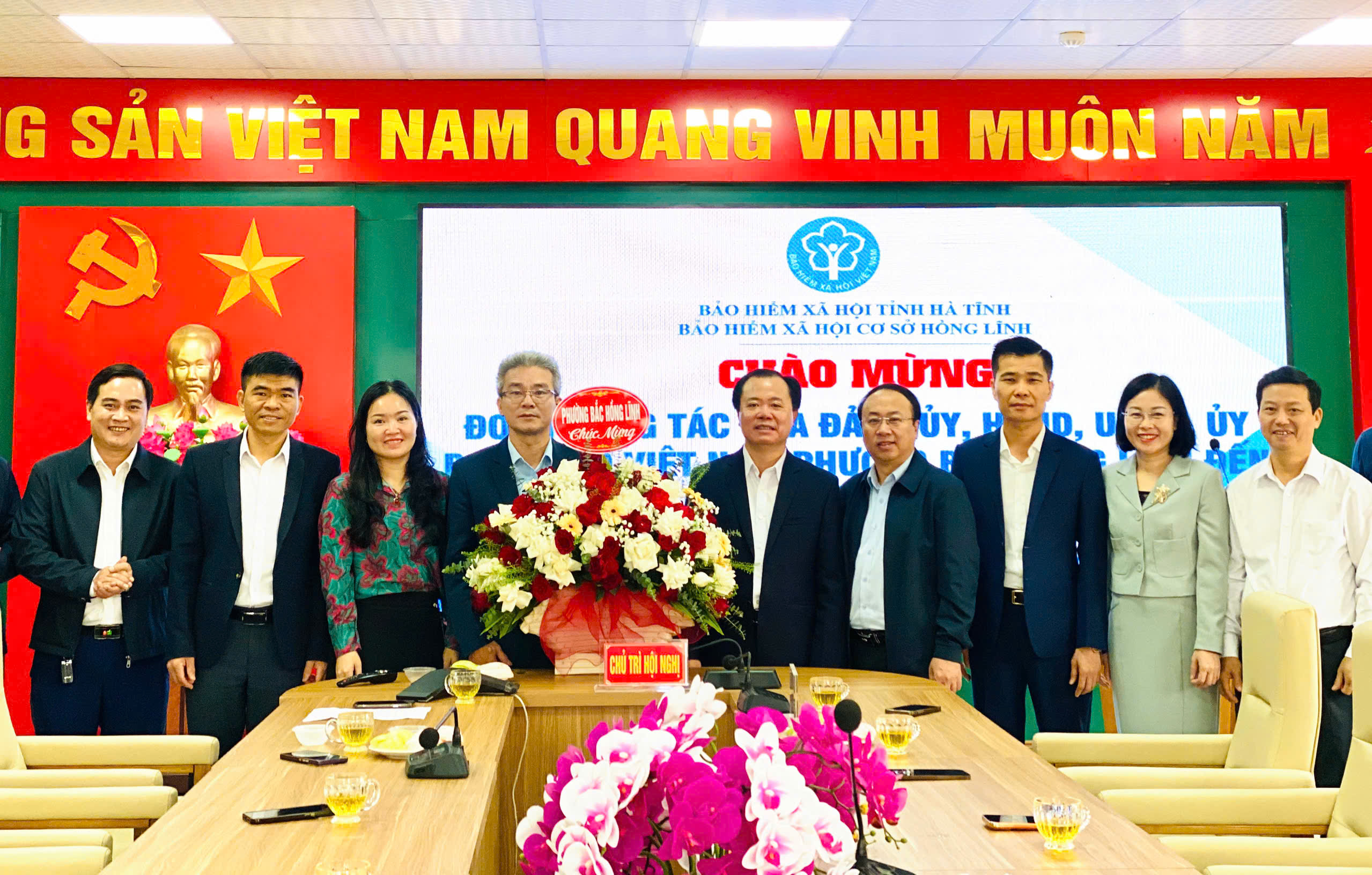 Tặng hoa chúc mừng Bảo hiểm Xã hội cơ sở Hồng Lĩnh