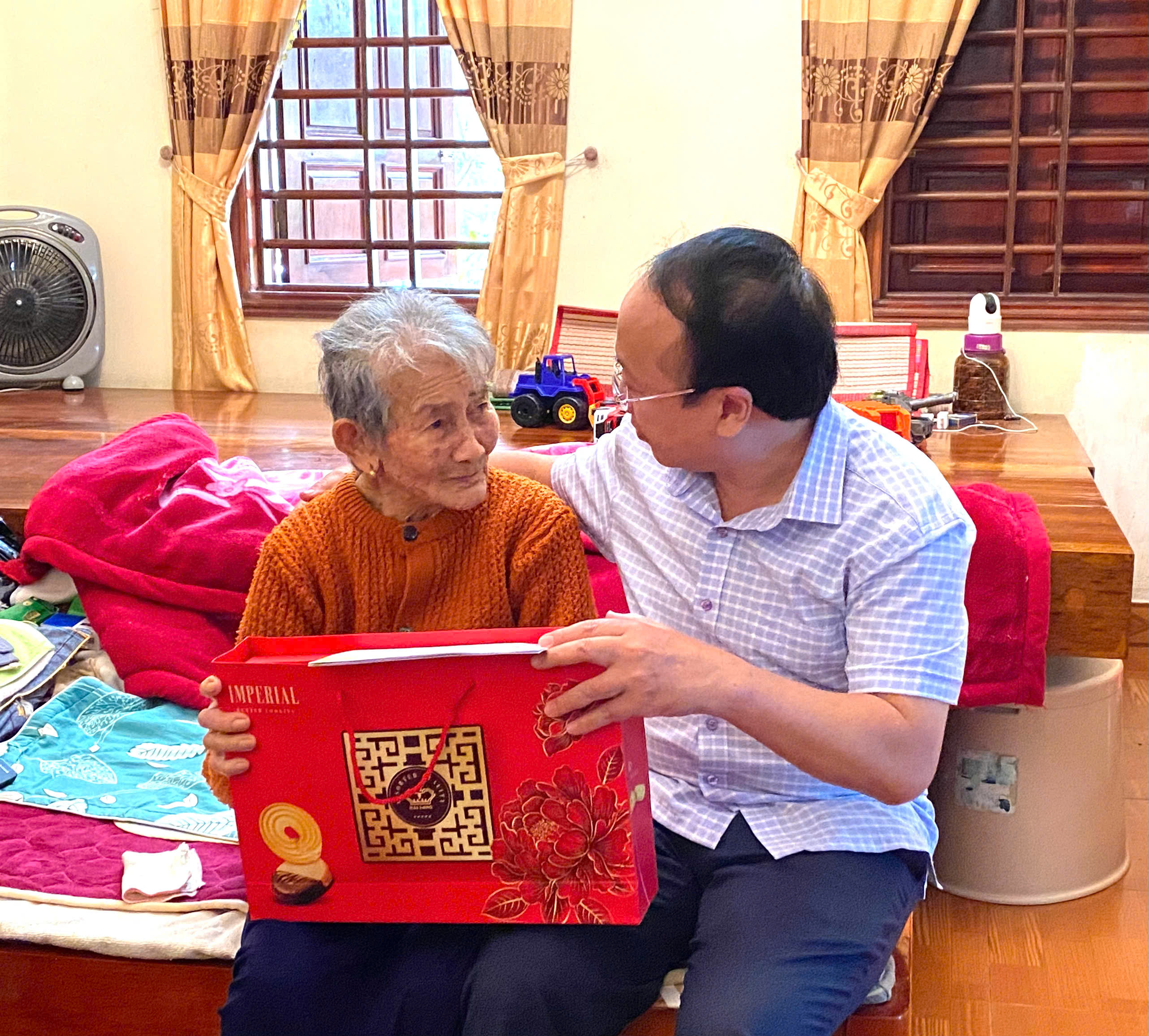 Đồng chí Phó Bí thư Thường trực Đảng ủy tặng quà Mẹ Việt Nam anh hùng Đào Thị Lan