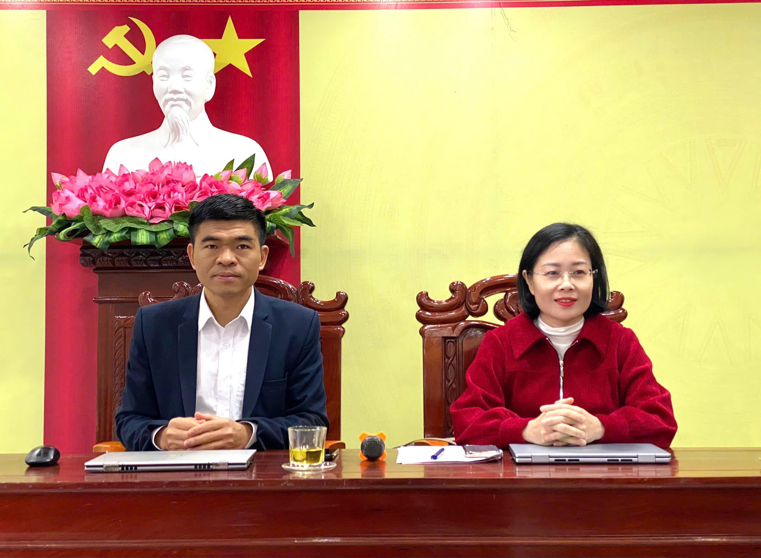 Đồng chí Nguyễn Thị Thắm, UVBTV Đảng ủy, Chủ tịch UBMTTQ Việt Nam phường và đồng chí Lê Bá Khánh, UVBTV Đảng ủy, Phó Chủ tịch UBND phường chủ trì cuộc họp.