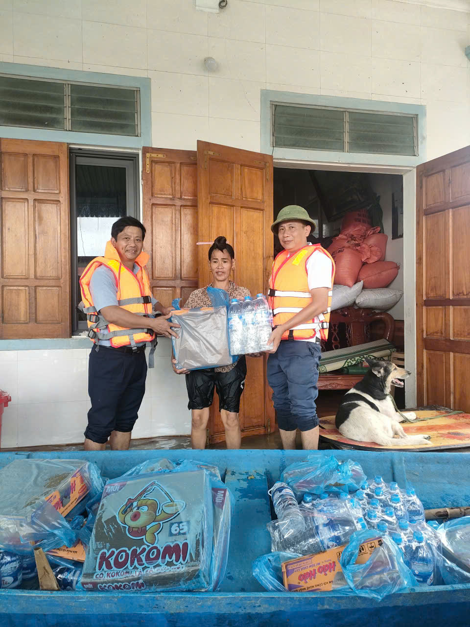 Tổ công tác do đồng chí Lê Bá Khánh, PCT UBND phường trao nước uống và nhu yếu phẩm cho hộ dân vùng ngập lụt nhằm giúp bà con sớm khắc phục khó khăn, ổn định cuộc sống.