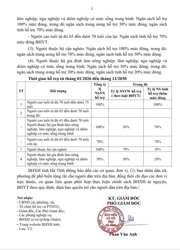 Thông báo về việc thực hiện chính sách hỗ trợ mức đóng BHXH tự nguyện và BHYT đối tượng tự đóng theo Nghị quyết số 182/NQ-HĐND ngày 10/12/2025 của HĐND tỉnh Hà Tĩnh