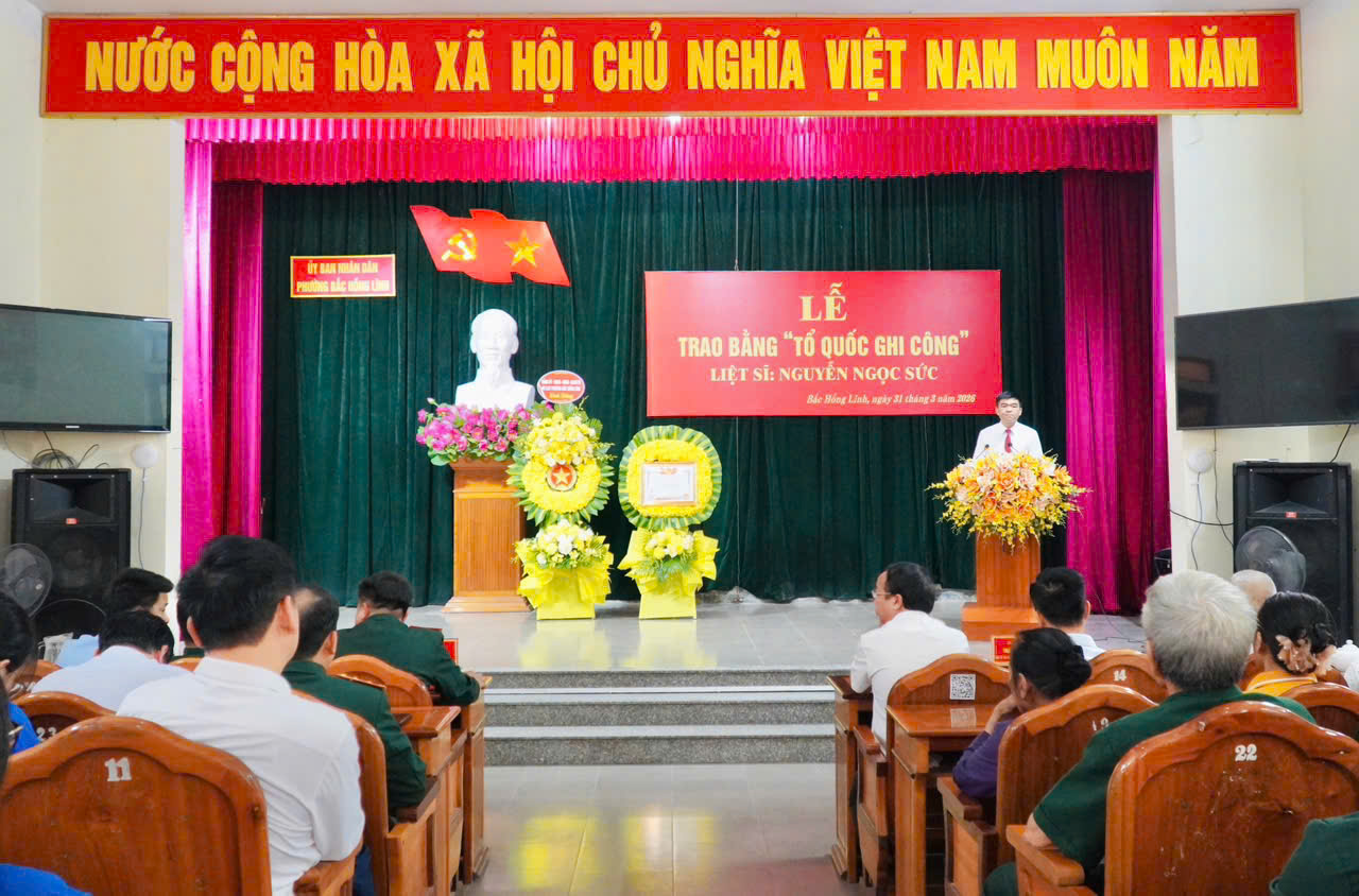 Sáng ngày 31/3, phường Bắc Hồng Lĩnh tổ chức trọng thể Lễ trao Bằng “Tổ quốc ghi công” cho liệt sĩ Nguyễn Ngọc Sức.